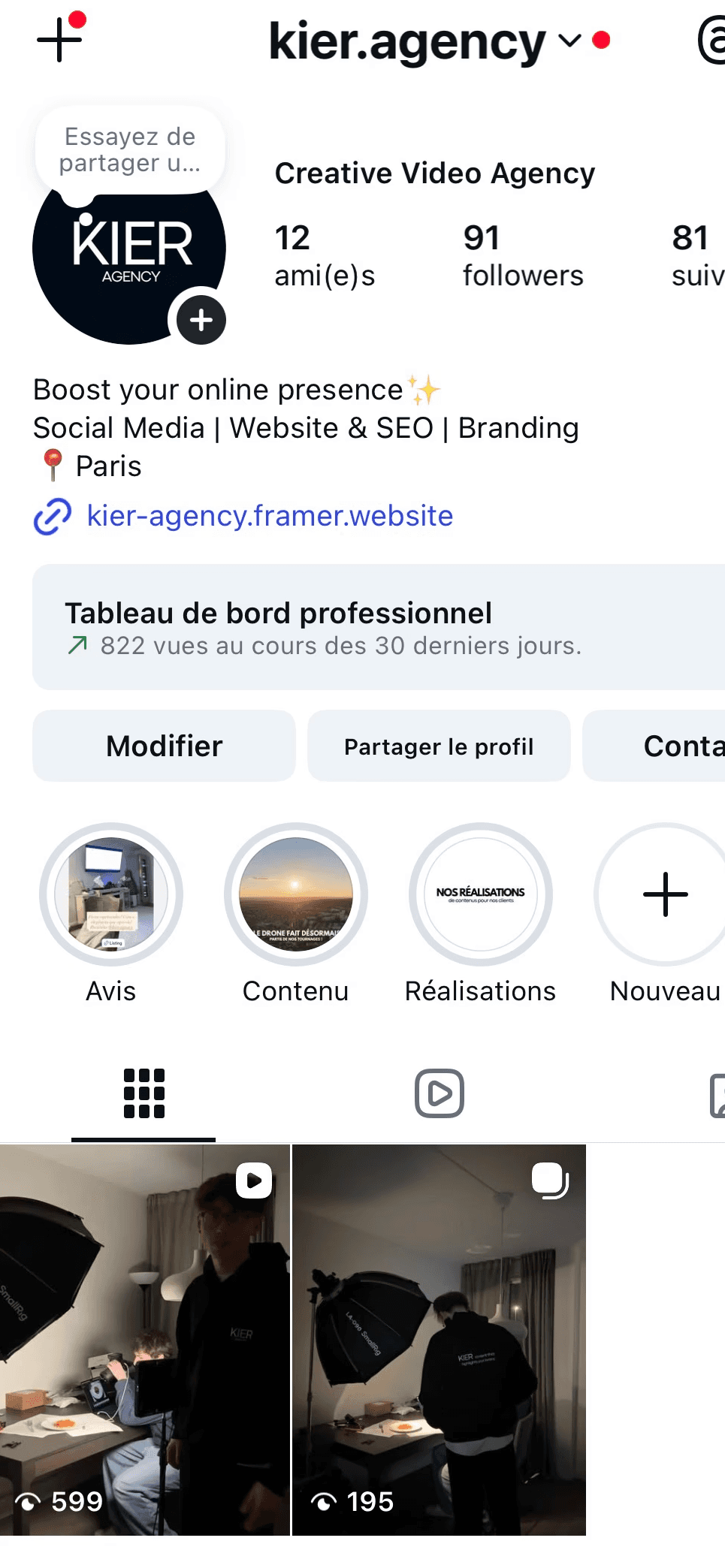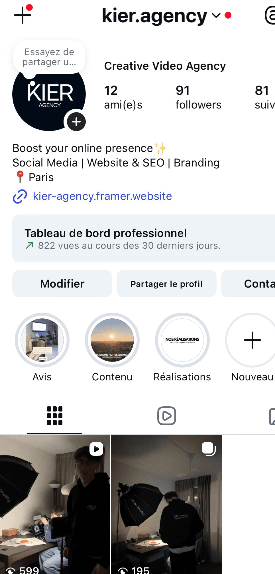 Kier agency est spécialisés dans les vidéos pour les réseaux sociaux.